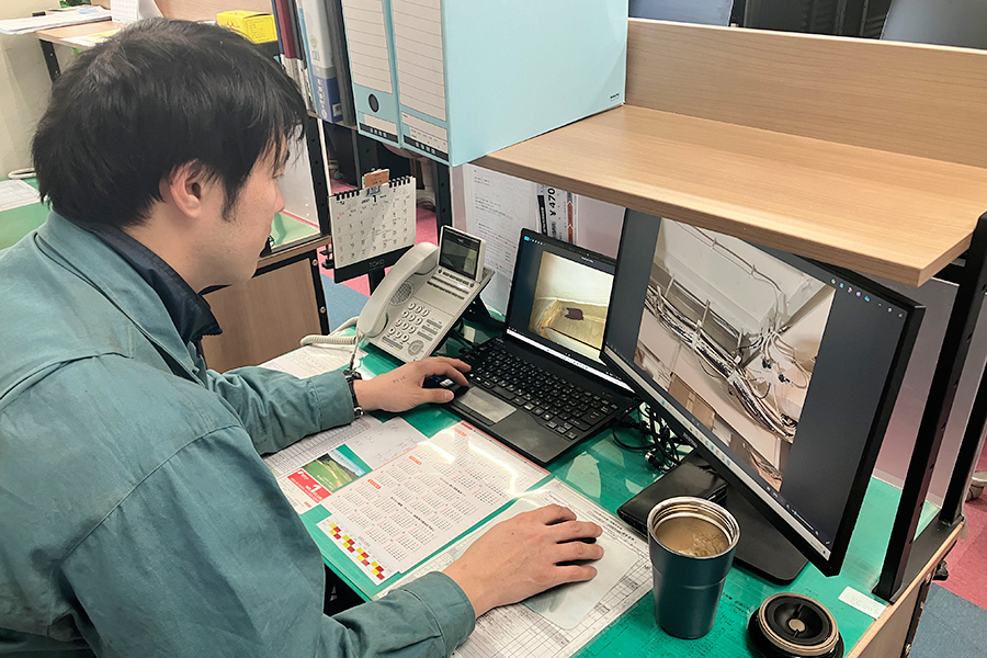 お客様のご要望にあった施工案の立案・検討を行い、その内容を基に見積書を作成しています。受注後は、他現場との人員調整や資材・機材手配も行います。