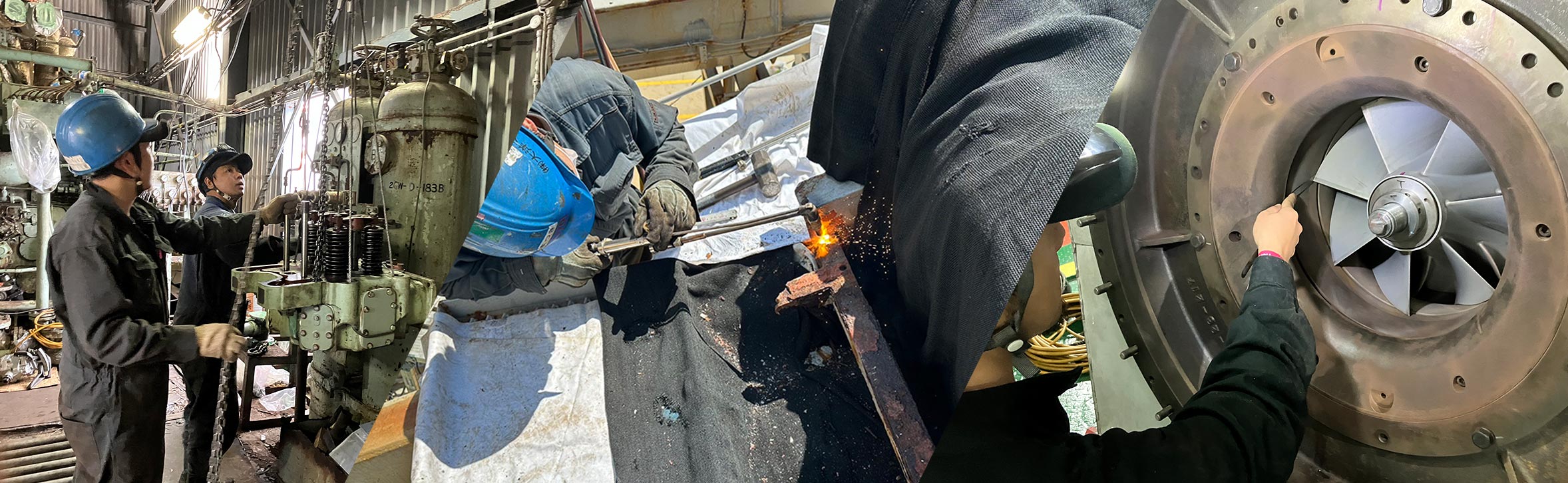 船舶や陸上工場の内燃機関、過給機、各種ポンプ、熱交換器、バルブ等のオーバーホール修理を行います。