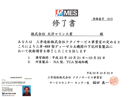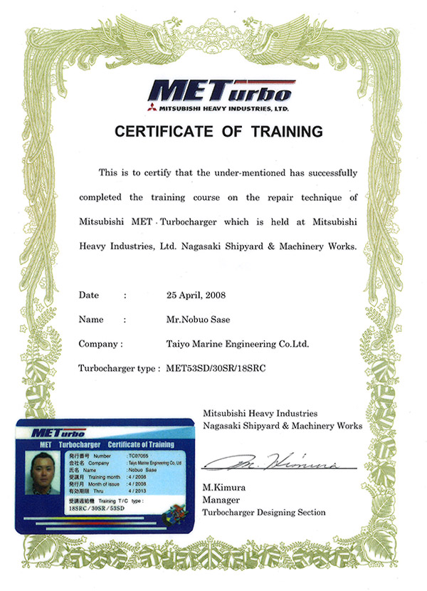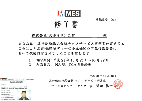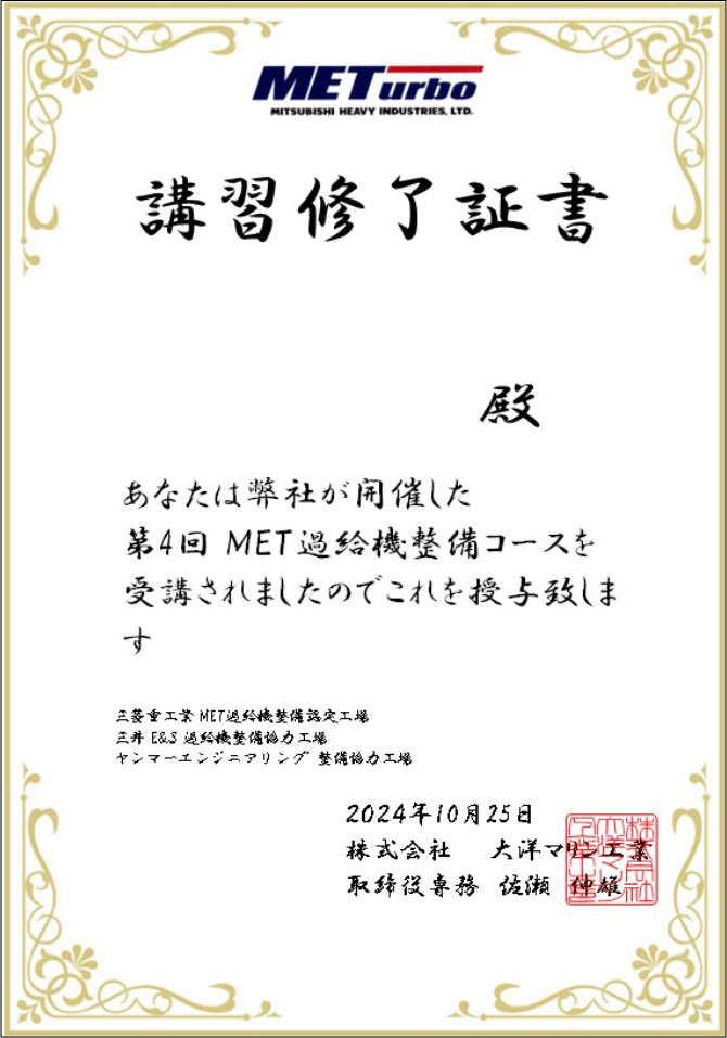 MET型過給機講習修了書