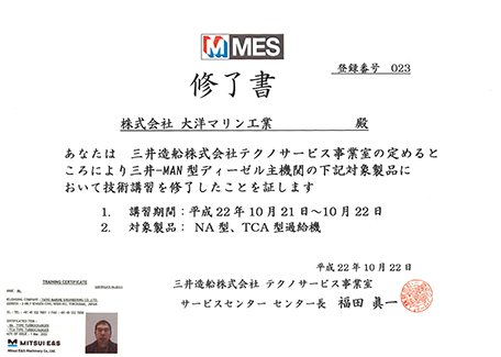 NA,TCA型過給機講習修了書
