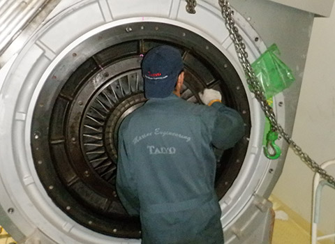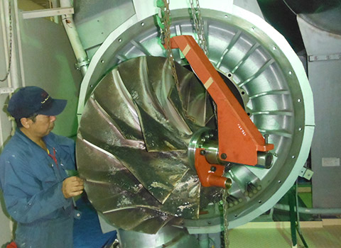 We are a subcontractor for the maintenance of Mitsui E&S's NA and TCA turbochargers. Our supervisors, with their years of experience and specialized knowledge, will assess the condition of each piece of equipment and propose the optimal maintenance plan.